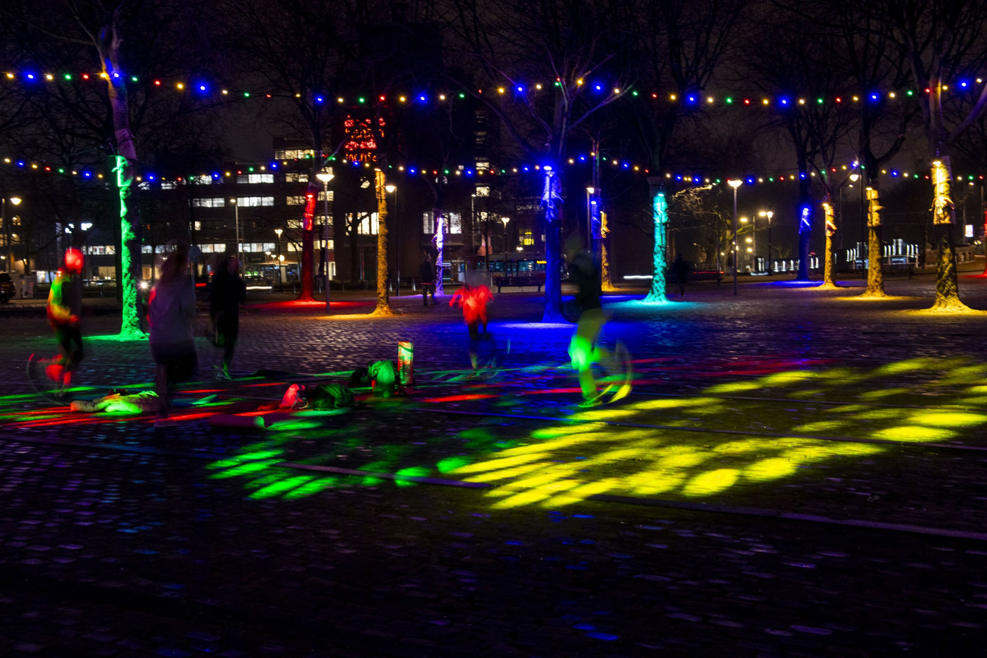 Verspreid over Rotterdam werden pleinen, winkelstraten en markante gebouwen sfeervol verlicht, gebaseerd op hun eigen identiteit en geschiedenis. Zonder programma of evenementen, maar met licht als krachtig symbool van samenhang. Wat begon als steun voor horeca en retail in coronatijd, groeide uit tot een stadsbreed project met blijvende impact – gerealiseerd door Mothership, samen met heel Rotterdam.