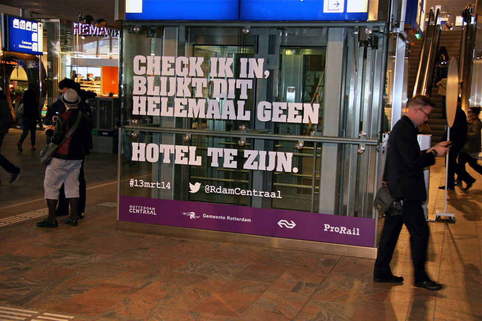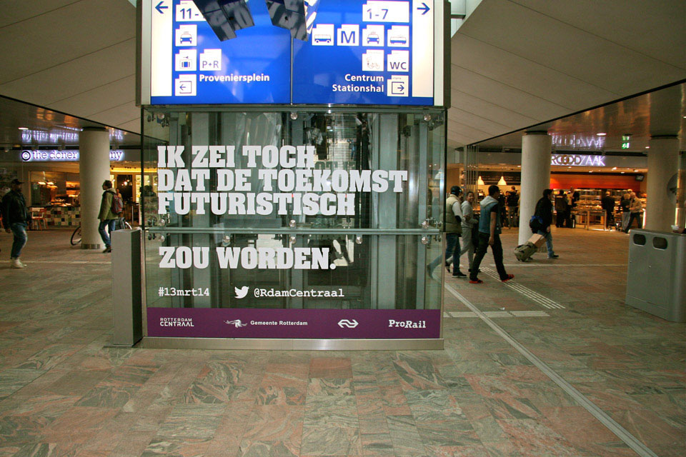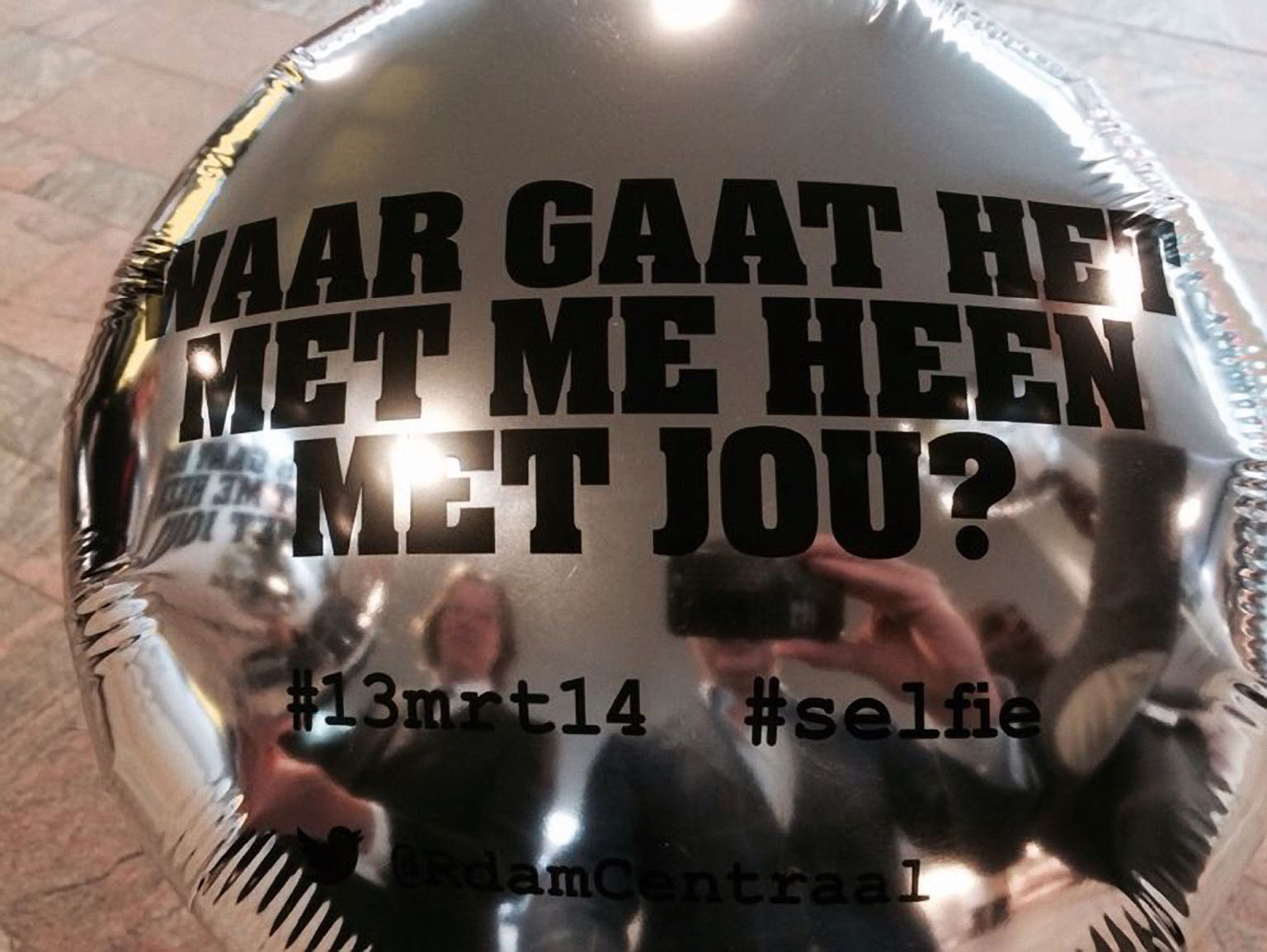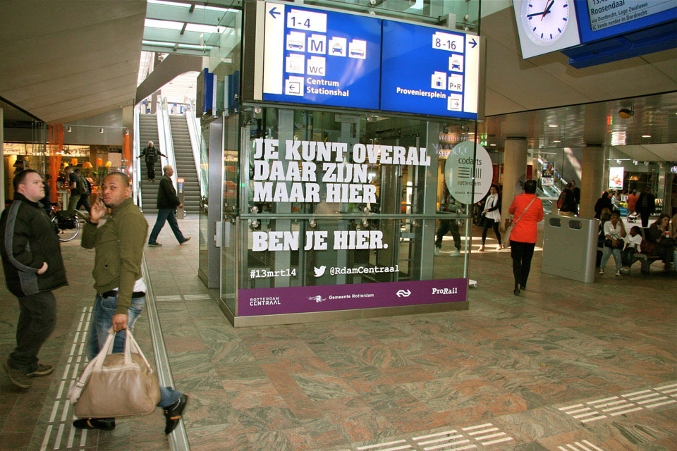 Voor de feestelijke opening van het vernieuwde Rotterdam Centraal Station op 13 maart 2014 ontwikkelde Mothership het concept voor #selfie – een tijdelijk tekstproject dat reizigers verraste, liet glimlachen of even stil liet staan. In samenwerking met Mwah – Tekstuele Verwenners en in opdracht van de projectgroep Opening Rotterdam Centraal (NS, ProRail, Gemeente Rotterdam en Rotterdam Centraal) werd een reeks korte, prikkelende teksten verspreid door het station.