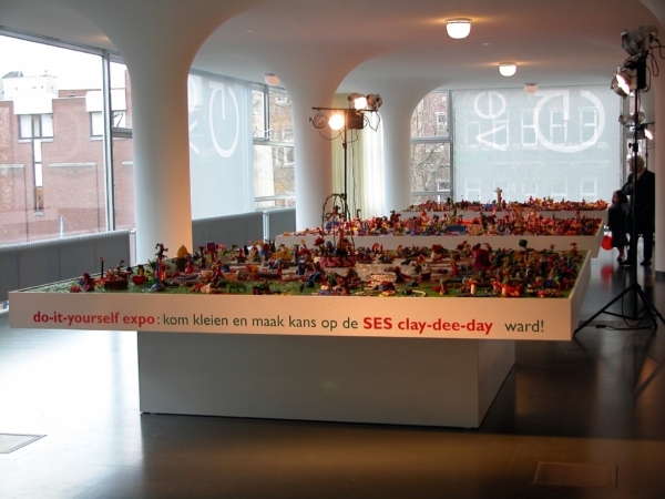 Na een succesvolle eerste editie in Showroom MAMA in Rotterdam heeft deze doe-het-zelf expo nog drie keer plaatsgevonden: ‘De Strip’ Vlaardingen (2001), Glaspaleis Heerlen (2004) en Nieuwegein (2010). SES Clay Dee Day was een doe-het-zelf expo waarbij de bezoeker zélf de kunstenaar werd. Het motto? “Kunst kijken, je kunt het ook gewoon zelf maken.” De tentoonstellingsruimte veranderde telkens in een bont, levendig kleilandschap waarin iedereen – van nieuwsgierige peuter tot gepassioneerde opa – zijn of haar fantasie de vrije loop kon laten. In een speciaal ingerichte ‘sushi kleibar’ werden sculpturen van zacht felgekleurde klei gekneed en toegevoegd aan het groeiende tafellandschap.
