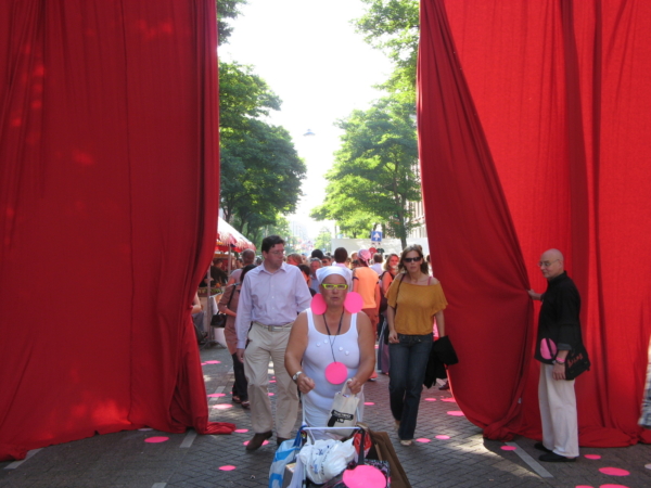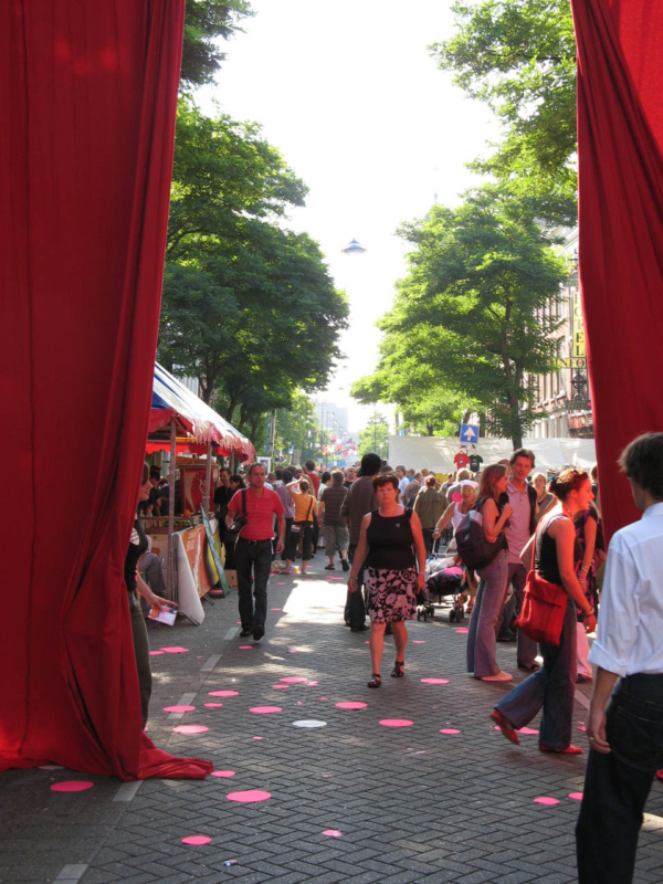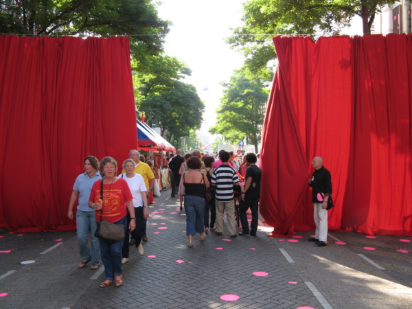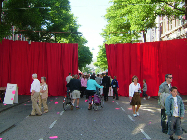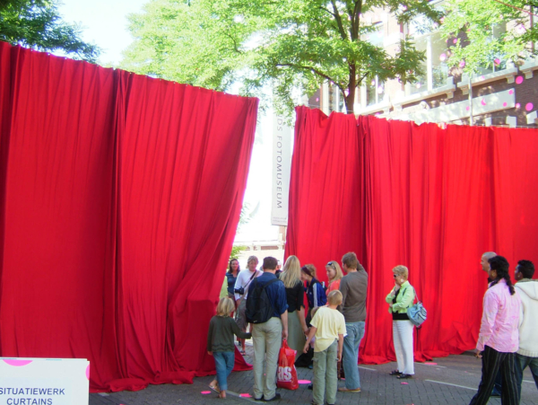 Tijdens het festival Wereld van de Witte de With in 2006 presenteerde Yvette Teeuwen het project Situatiewerk Curtains, een ruimtelijke ingreep in de openbare ruimte die zowel visueel als fysiek ingreep op de beleving van de stad. Het werk bestond uit twee grote, felrode gordijnen die als theatrale elementen tussen de gebouwen gespannen waren. Deze gordijnen vormden geen statisch decor, maar beïnvloedden actief de beweging van het publiek in de straat.