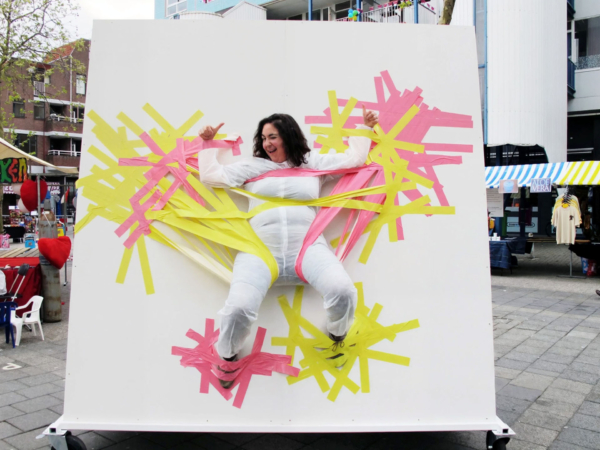 In een vrolijke en licht anarchistische knipoog naar oude vormen van publieke vernedering, kregen bezoekers van het kunstfestival De Wereld van Witte de With in 2009 de kans om vriend en vijand letterlijk te kijk te zetten. Met gekleurde gaffer-tape plakten mensen elkaar op mobiele wanden, die vervolgens als een soort vrolijke schandpaal door de straat werden gerold.