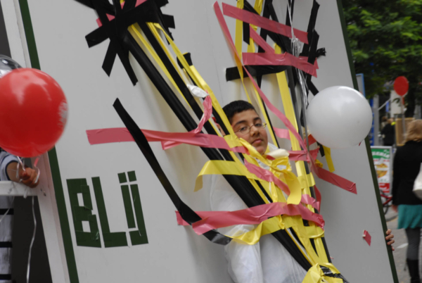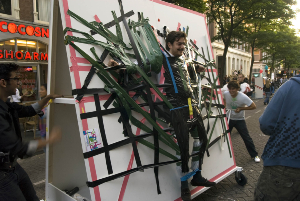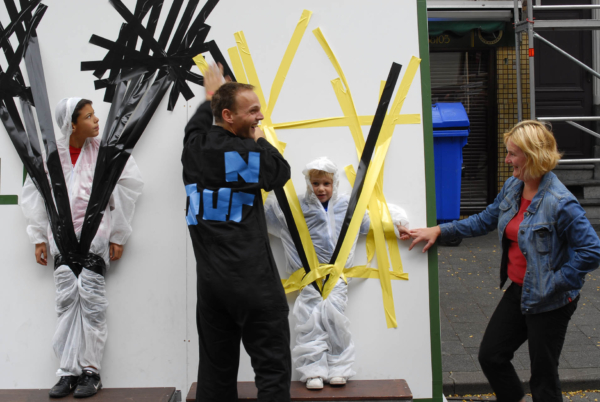 Tijdens het festival Wereld van de Witte de With in 2009 konden bezoekers deelnemen aan het interactieve project “Stick Up!”. Deze ludieke installatie bestond uit drie verrijdbare muren waarop mensen met vrolijk gekleurde gaffer-tape konden worden vastgeplakt – om vervolgens feestelijk door de straat te worden geparadeerd.