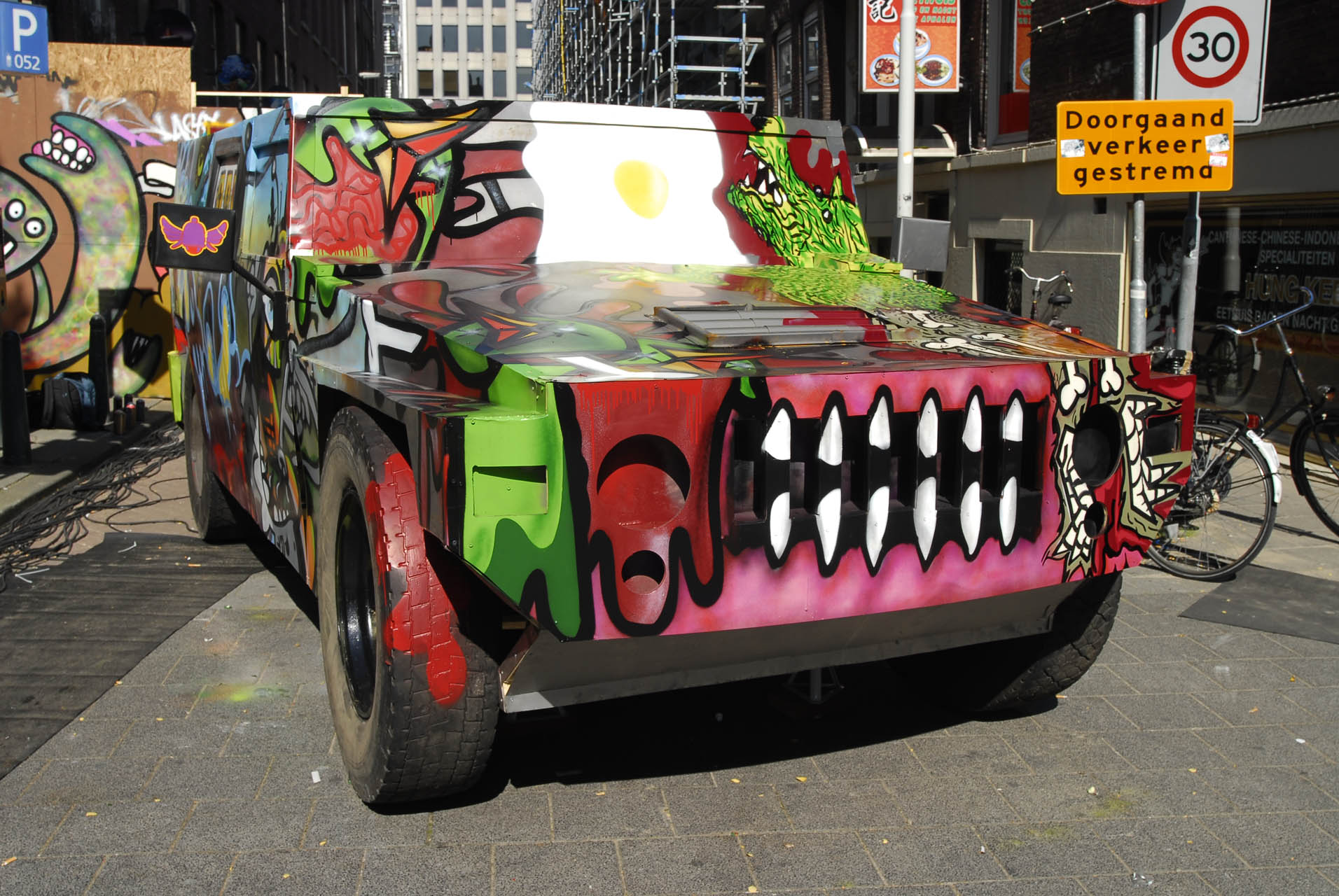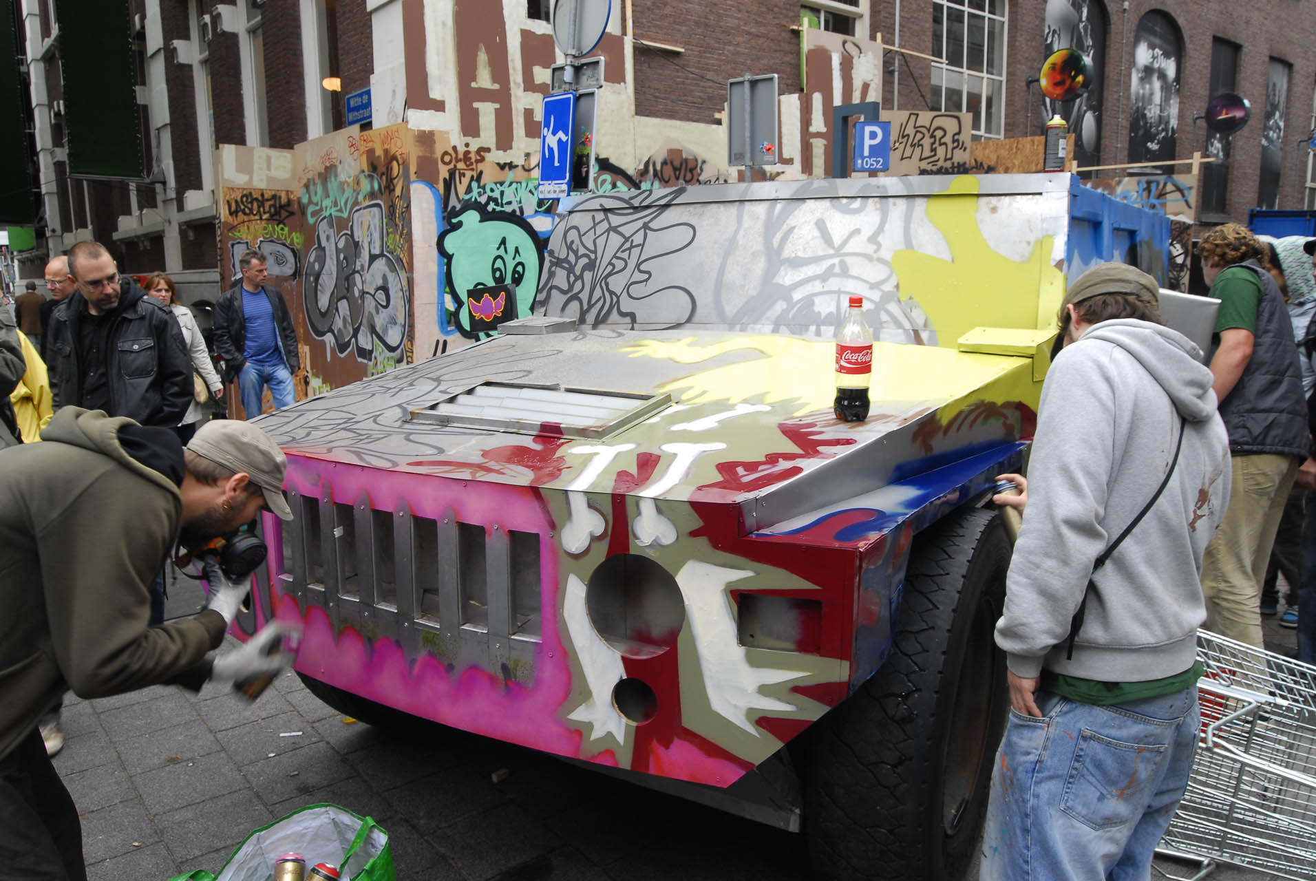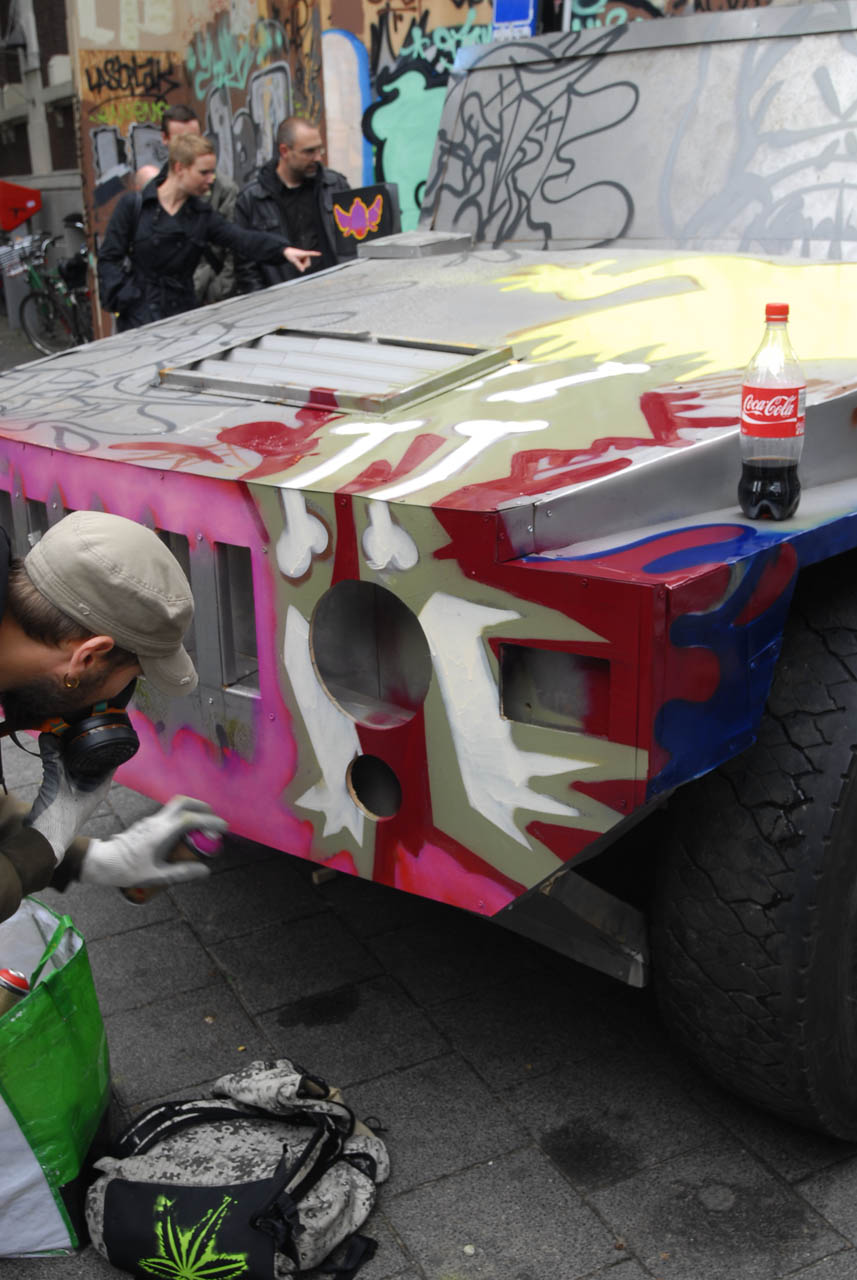 De kartonnen Hummer, anderhalf keer groter dan het origineel, werd ter plekke beschilderd door het street art collectief Lastplak in een uitbundige, MTV-achtige stijl. Door het robuuste imago van de SUV te vertalen naar een kwetsbaar, vergankelijk materiaal en dit vervolgens visueel te overladen, werd een speels maar krachtig commentaar geleverd op de hypocrisie van onze omgang met duurzaamheid.