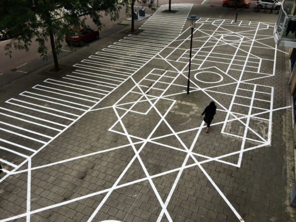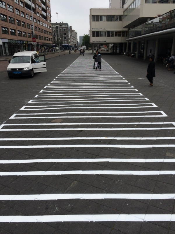 Met Superzebra bracht kunstenaar Emma van Beek een subtiel maar krachtig lijnenspel naar de straat. Geen kleuren, geen franje – maar een grafische ingreep die het vertrouwde patroon van het zebrapad verstoort en verrijkt.