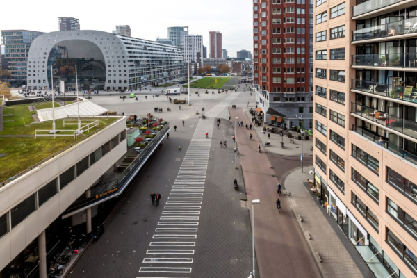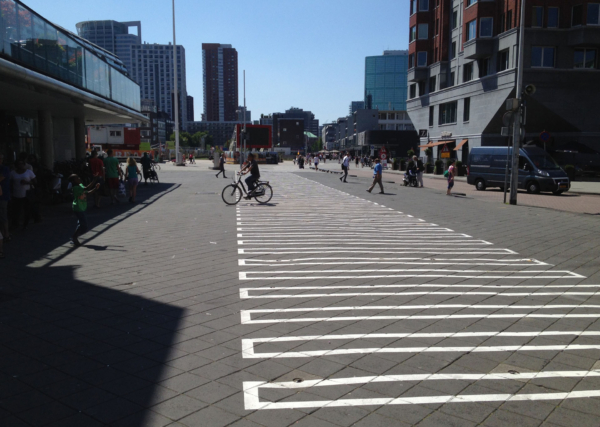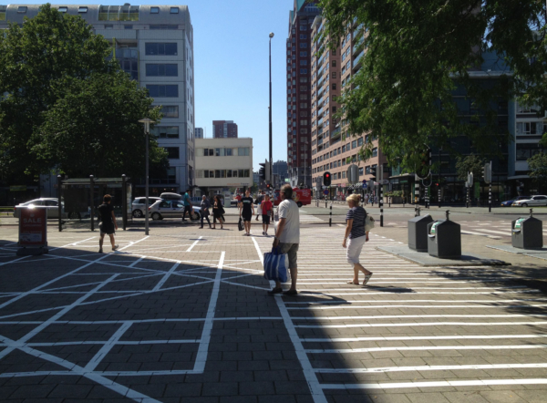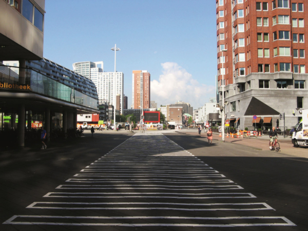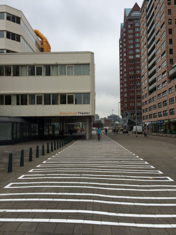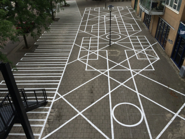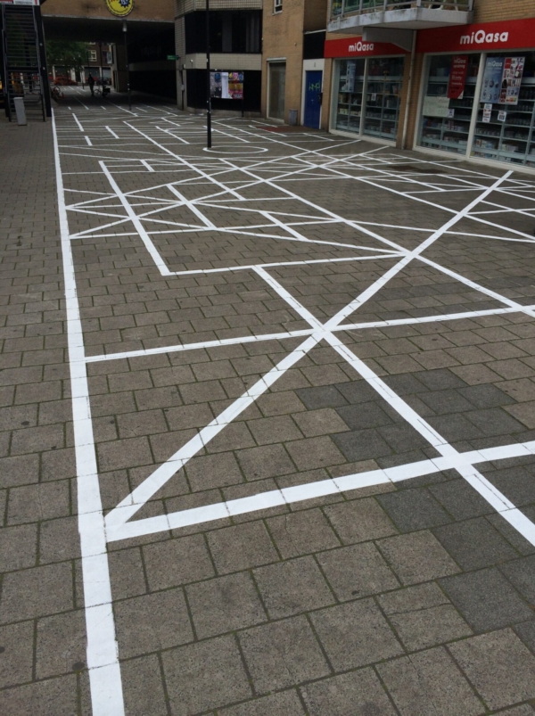 De geometrische lijnen spelen met perspectief en beweging. Ze nodigen uit tot vertragen, kijken, en misschien zelfs even stilstaan – precies op een plek waar dat normaal zelden gebeurt.