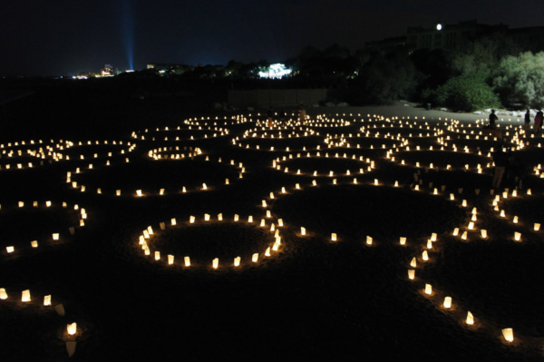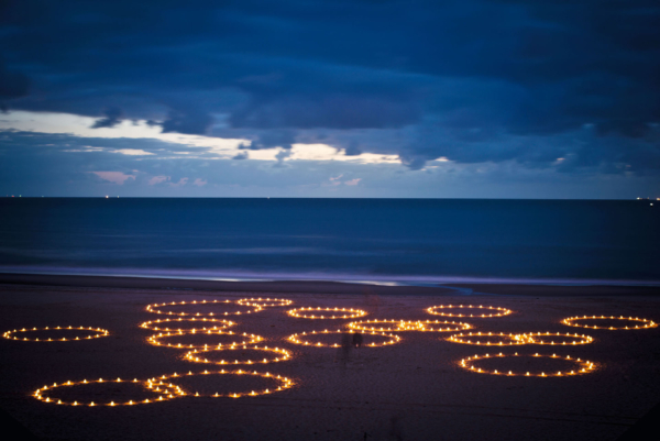 De Human Light Circle is een poëtisch en interactief lichtkunstwerk van kunstenaar Patrick Kruithof. Het idee is even simpel als betoverend: met behulp van papieren zakjes en waxinelichtjes vormen mensen samen cirkels van licht. Wat het bijzonder maakt, is dat de afmeting van deze cirkels niet wordt bepaald door een vaste maat, maar door de mensen zelf – hun aanwezigheid en betrokkenheid vormen letterlijk de maatstaf van het kunstwerk.