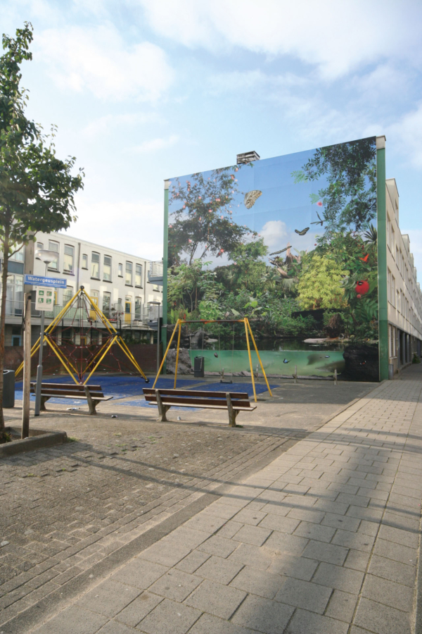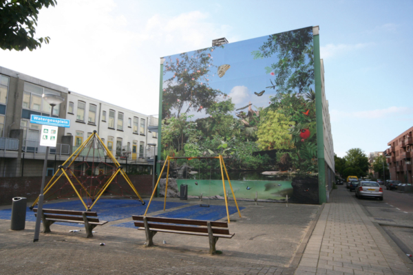 In 2014 kreeg het Watergeusplein in Rotterdam een tropische verrassing met de komst van Tropical Garden, een visuele oase van groen die werd gerealiseerd door kunstenaarsduo Monique Benthin en Rick Messemaker. Het werk maakt deel uit van het bredere Copy Garden-concept waarin een deel van een bestaande groene omgeving wordt ‘gekopieerd’ naar een versteende, ongezellige plek in de stad. In dit geval was de inspiratie de vlindertuin Amazonica van Diergaarde Blijdorp.