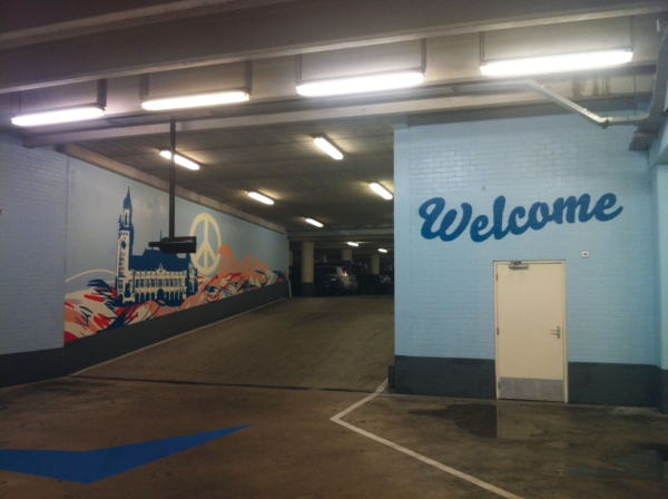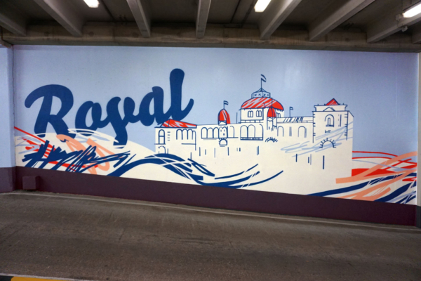 Welcome to the Royal Beach is een kleurrijke muurschildering en stickerinstallatie van Studio Ruwedata en Ephameron, gerealiseerd in de parkeergarage Scheveningen Bad in Den Haag. Het werk viert de identiteit van de stad aan zee en verbindt drie thema’s: de koninklijke allure van Den Haag, de kuststad met haar ontspannen sfeer, en de internationale stad van vrede en recht.
