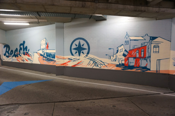 Mothership trad bij dit project op als curator, uitvoerder en projectmanager. Door inhoud en locatie op elkaar af te stemmen en de technische uitvoering te begeleiden, zorgde Mothership ervoor dat deze ondergrondse plek transformeerde tot een visueel baken dat bewoners en bezoekers op koninklijke wijze verwelkomt aan het strand.