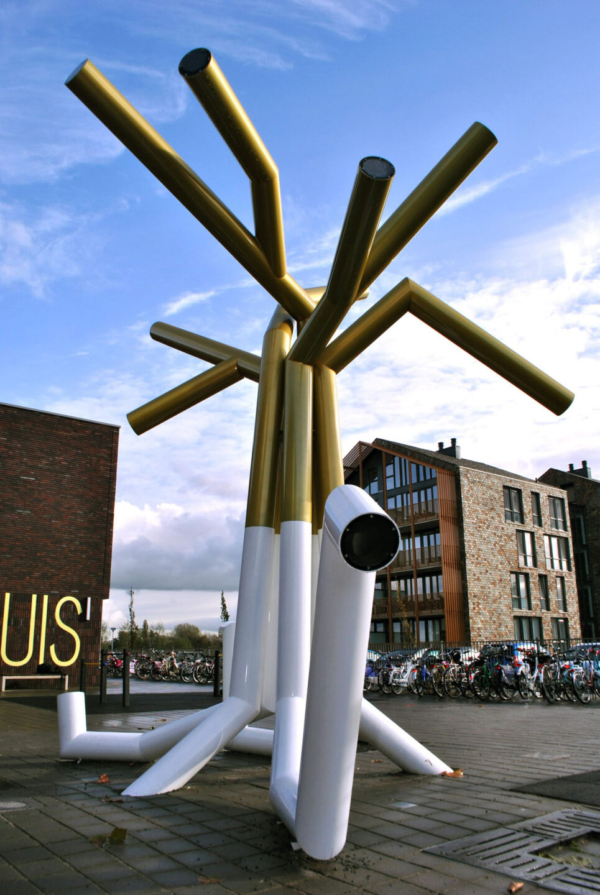 In 2013 realiseerde kunstenaar Gabriel Lester het interactieve kunstwerk Yggdrasil op het plein voor het Cultuurhuis in Oudewater. Het werk, genoemd naar de mythische levensboom uit de Noorse mythologie, bestaat uit een reeks periscopen die als organische boomtakken uit de grond lijken te groeien. Deze sculpturale vormen nodigen voorbijgangers uit om hun omgeving vanuit een nieuw, verhoogd perspectief te bekijken. Vooral jongeren worden geprikkeld tot interactie, verwondering en spel. In het donker vangt en reflecteert Yggdrasil het licht van de omgeving, waardoor het kunstwerk letterlijk begint te stralen. Yggdrasil is een ode aan perspectief en verbeeldingskracht, en laat op speelse wijze zien hoe kunst de openbare ruimte tot leven kan brengen. Mothership voerde het project uit en begeleidde het participatietraject in opdracht van de kunstcommissie Oudewater.